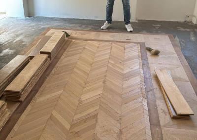 Abbiamo applicato trattamenti protettivi e finiture per preservare la bellezza e la durata del parquet nel tempo.