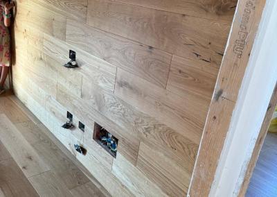 Ogni dettaglio, dalla scelta delle finiture alla direzione delle assi, è stato curato per creare un effetto armonioso e di grande impatto visivo.