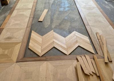Per i parquet esistenti, abbiamo eseguito riparazioni mirate, sostituendo le parti danneggiate e ripristinando la superficie originale.